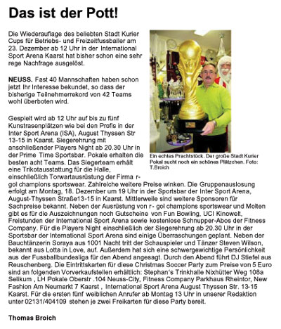 Stadt-Kurier Neuss: "Das ist der Pott!"; Pressebericht zum Stadt-Kurier Cup Neuss / Kaarst 2006
