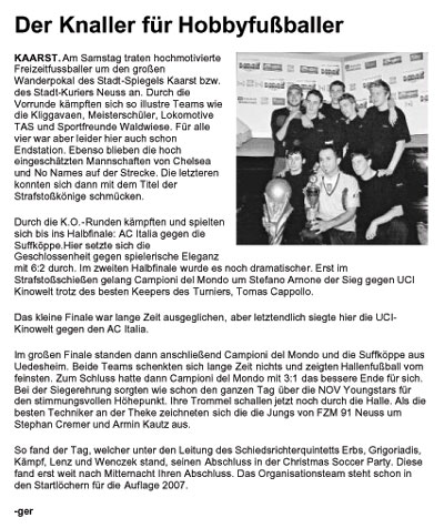 Stadt-Kurier Neuss: "Der Knaller für Hobbyfußballer"; Pressebericht zum Stadt-Kurier Cup Neuss / Kaarst 2006