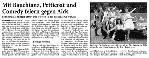 Aachener Nachrichten: "Mit Bauchtanz, Petticoat und Comedy feiern gegen Aids - Spendengala Redball öffnet ihre Pforten in der Festhalle Oberbruch"; Pressebericht zur Redball Spendengala 2007
