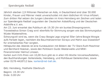 Westwoche / Westveranstaltungswoche.de: "Spendengala Redball"; Pressebericht zur Redball Spendengala 2007