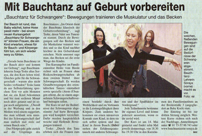 Rheinbote Düsseldorf (Rubrik: Fit & Gesund): "Mit Bauchtanz auf Geburt vorbereiten: «Bauchtanz für Schwangere»: Bewegungen trainieren die Muskulatur und das Becken"; Pressebericht zum neuen Bauchtanzkurs "Bauchtanz in der Schwangerschaft" - "Bauchtanz für Schwangere" ist ein Kursangebot in Kooperation mit Familieninstitut Heike vom Heede in Zusammenarbeit mit Baby Kochs Düsseldorf