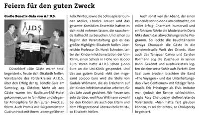 ":info #3 2005", Magazin der AIDS-Hilfe Düsseldorf e.V.: "Feiern für den guten Zweck"; Pressemeldung zur Benefizgala AIDS 2005 des Förderkreises A.I.D.S. e.V., Düsseldorf